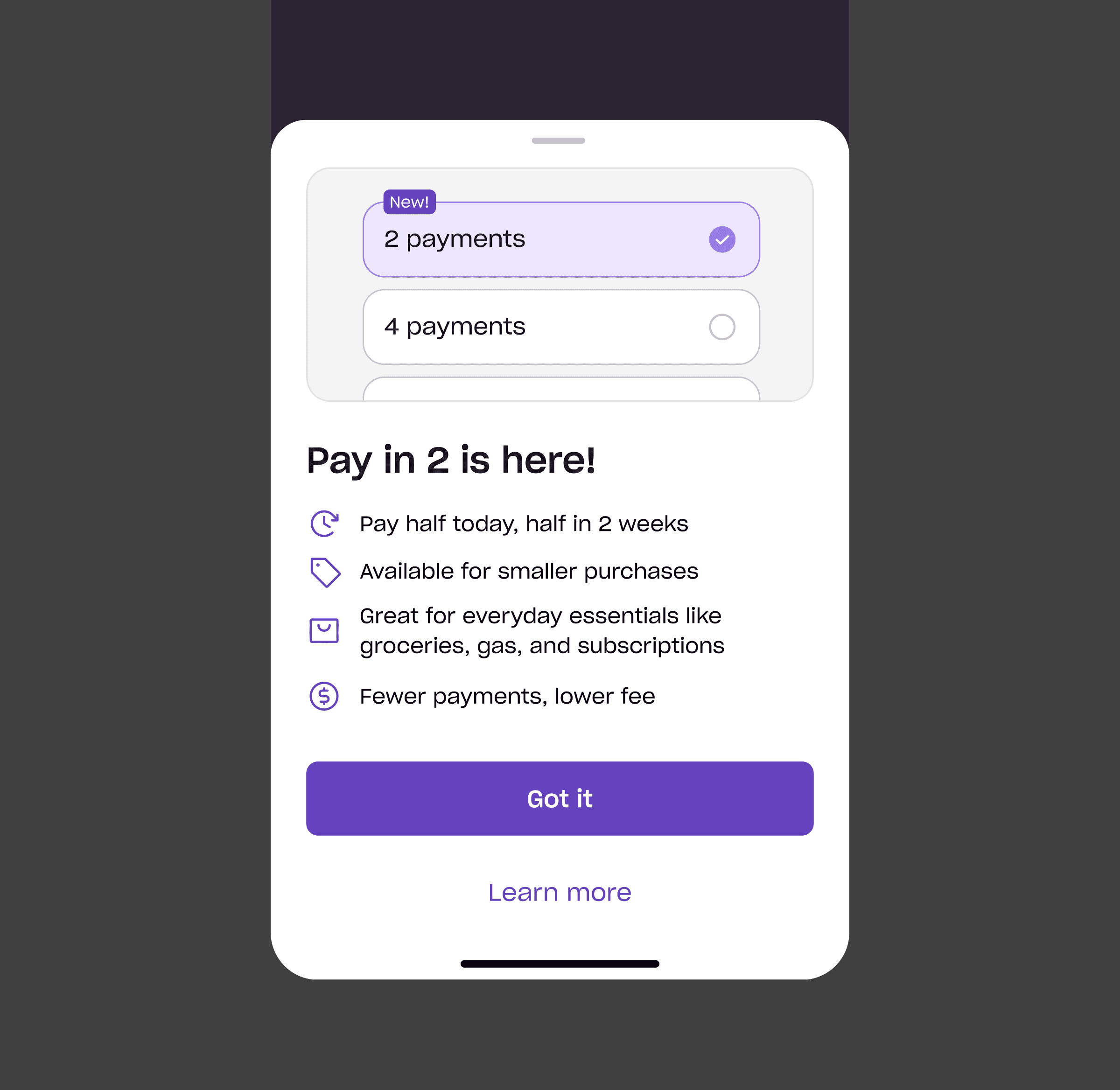 Enabled release of Pay in 2 in response to validated customer demand.