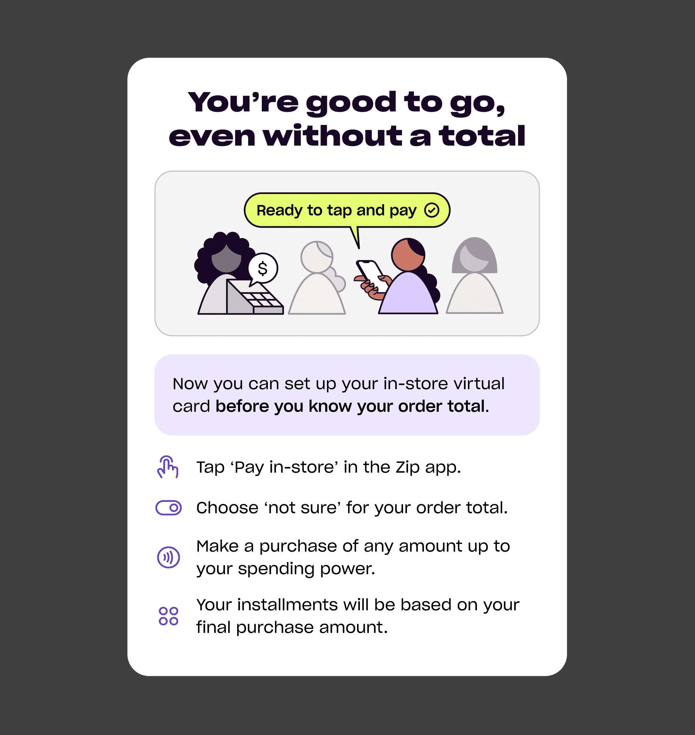 Paying in-store with Zip required several steps using the Zip app at point of purchase. The challenge was to improve this without compromising approval logic and fraud controls.