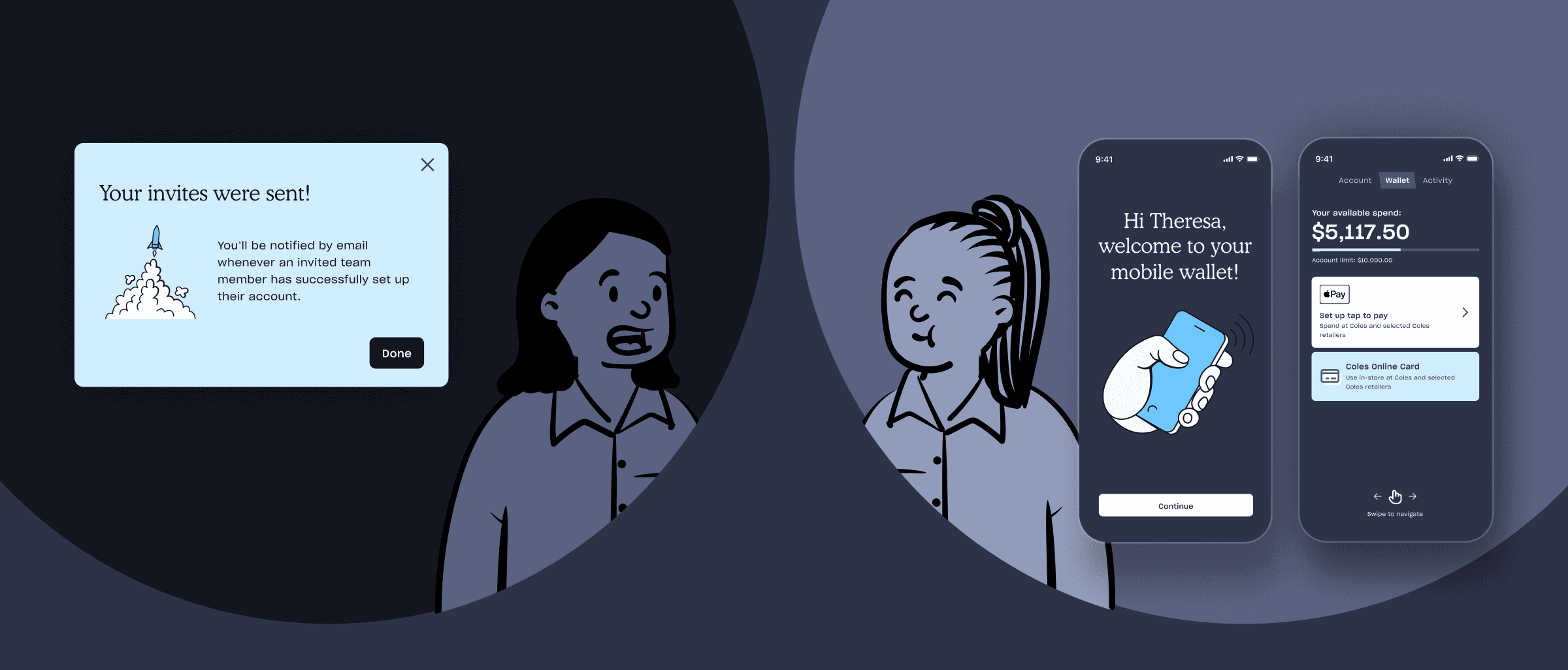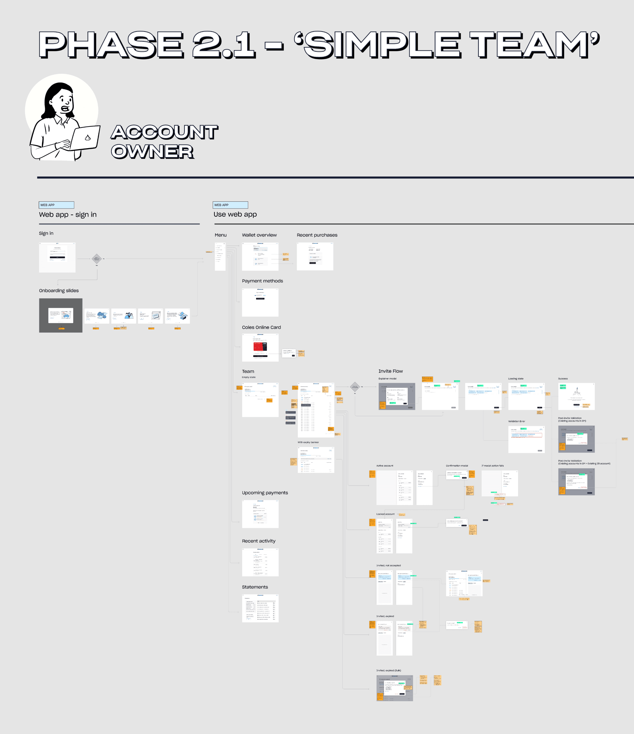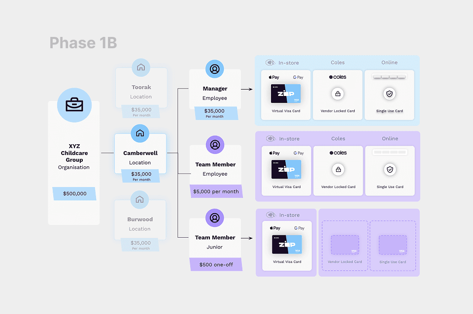 The work was initiated through a launch partnership with Coles Group and focused on defining scalable platform primitives—organisation structure, virtual card management, and spend controls—delivered across multiple planned phases.